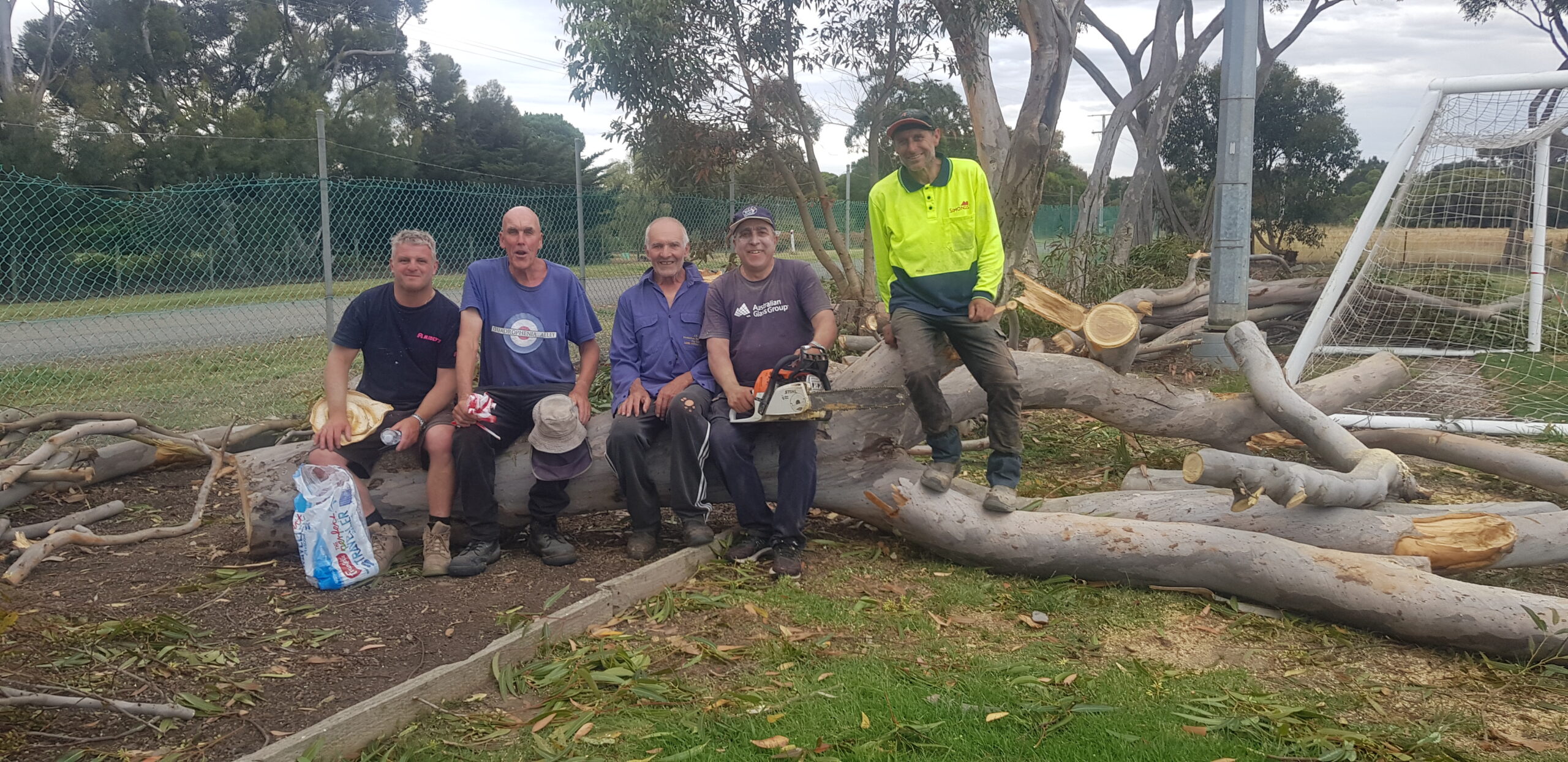 Huge thanks to Sam Santoro, Russell Butler, Les Milanovic, Murray Ricciardi and Ricky Secen for tackling and defeating, without injury, a number of trees that were looming dangerous over our grounds and lighting towers. Les and Murray looked right at home up in the boom lift. Thanks also to Frank Mazza, Tony Romano, Danny Ortiz and Mick who took off before we could get the camera out!